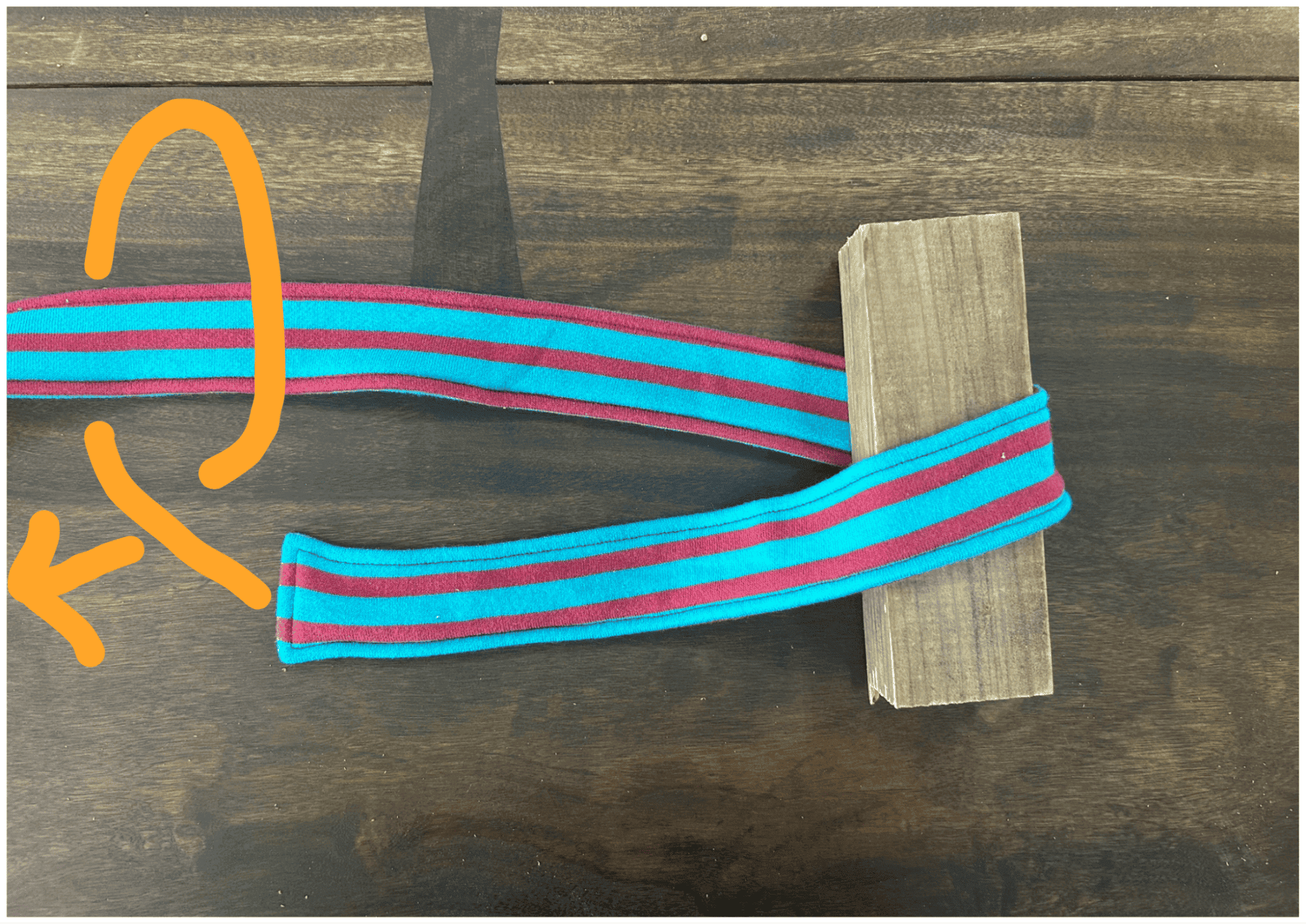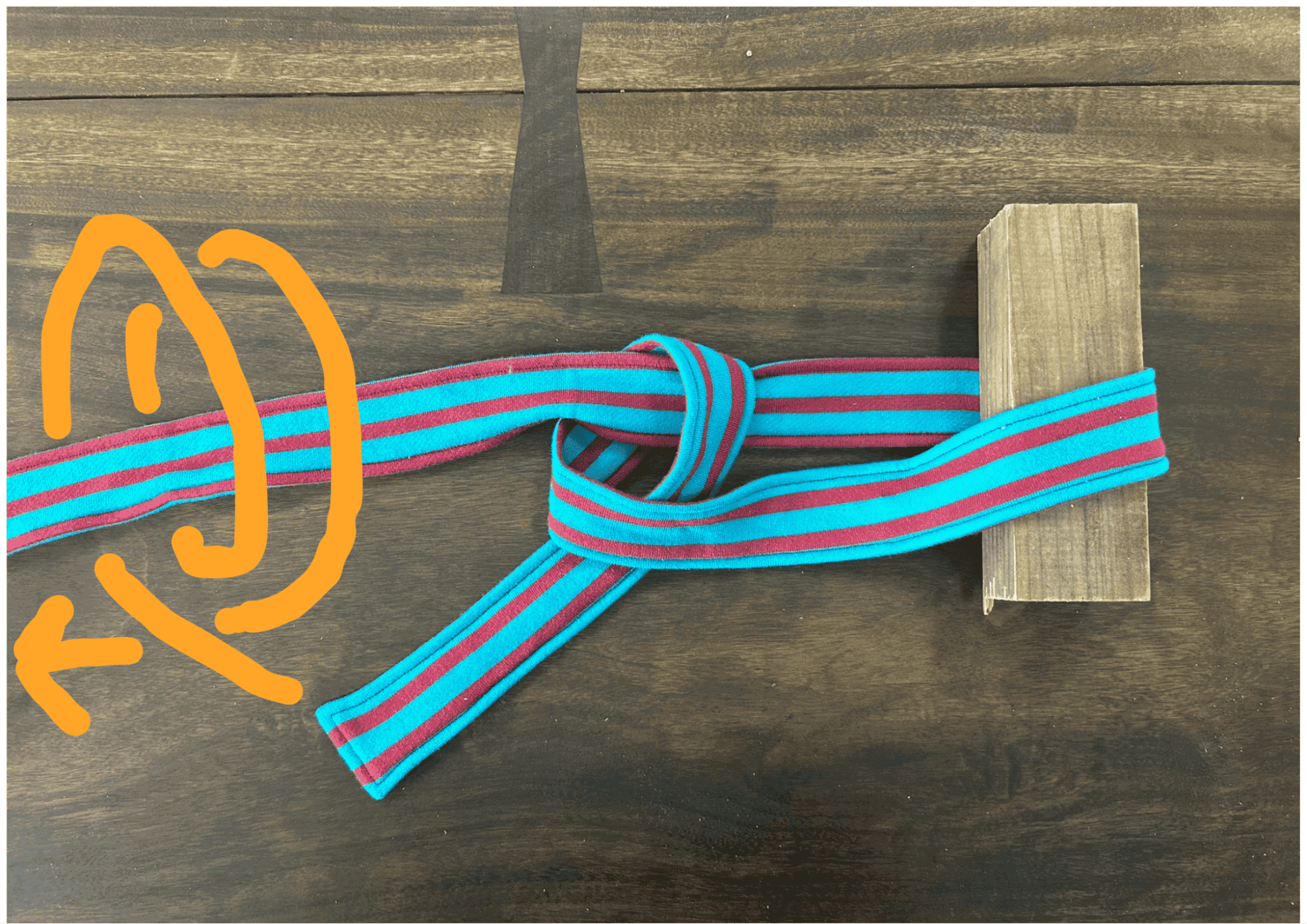 次に、その結び目から30cmほど離した位置でロープを主線に沿わせながら2回巻き付けて輪を整えましょう。