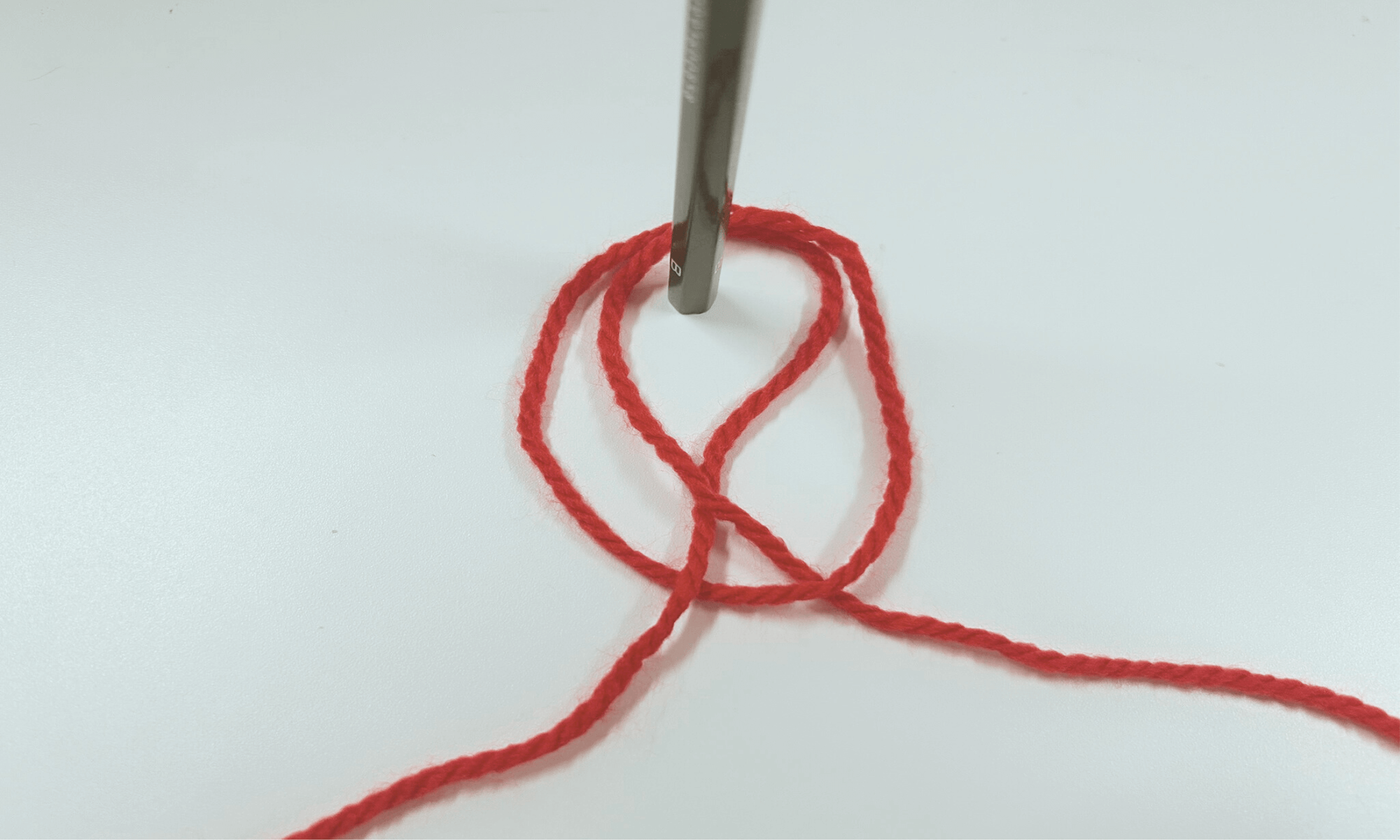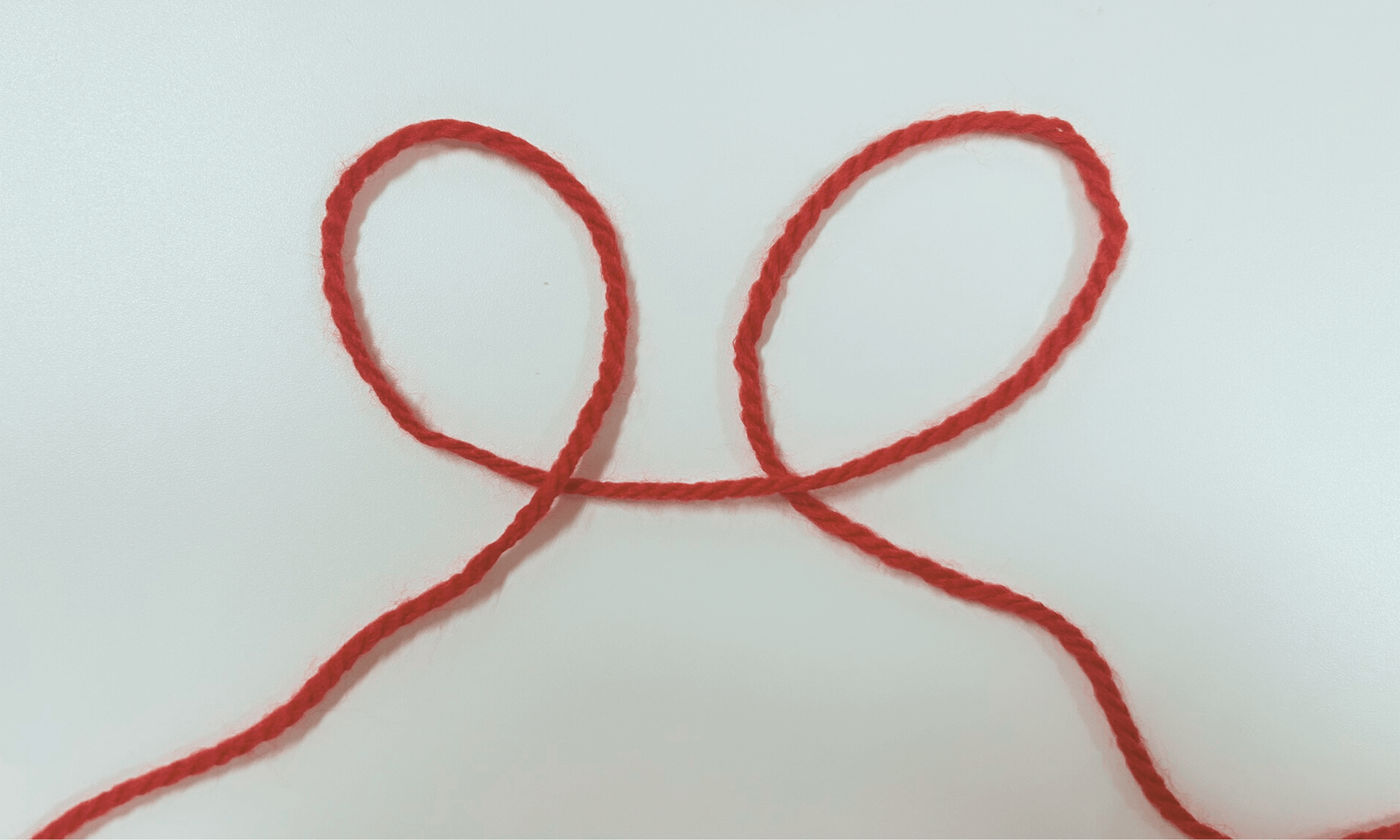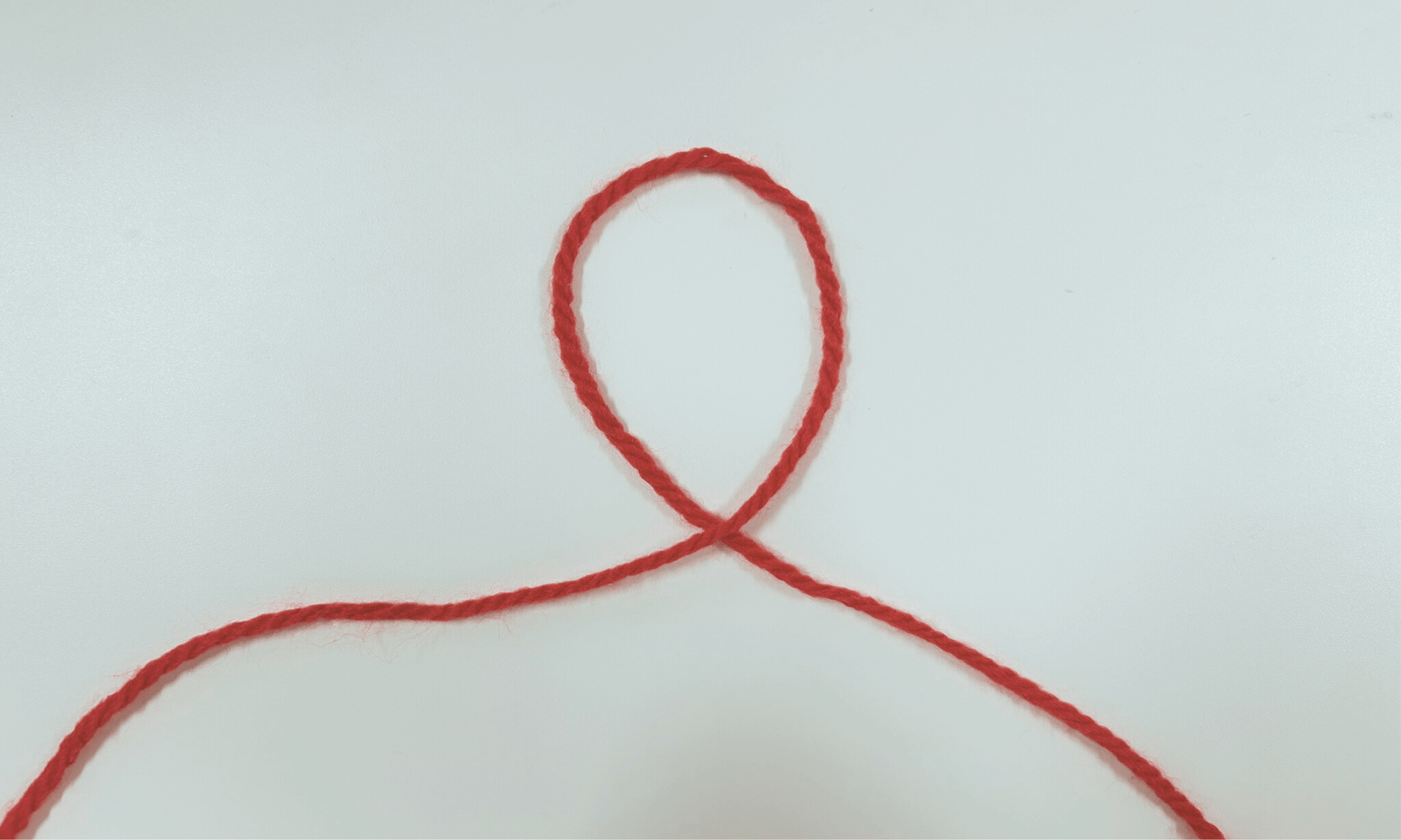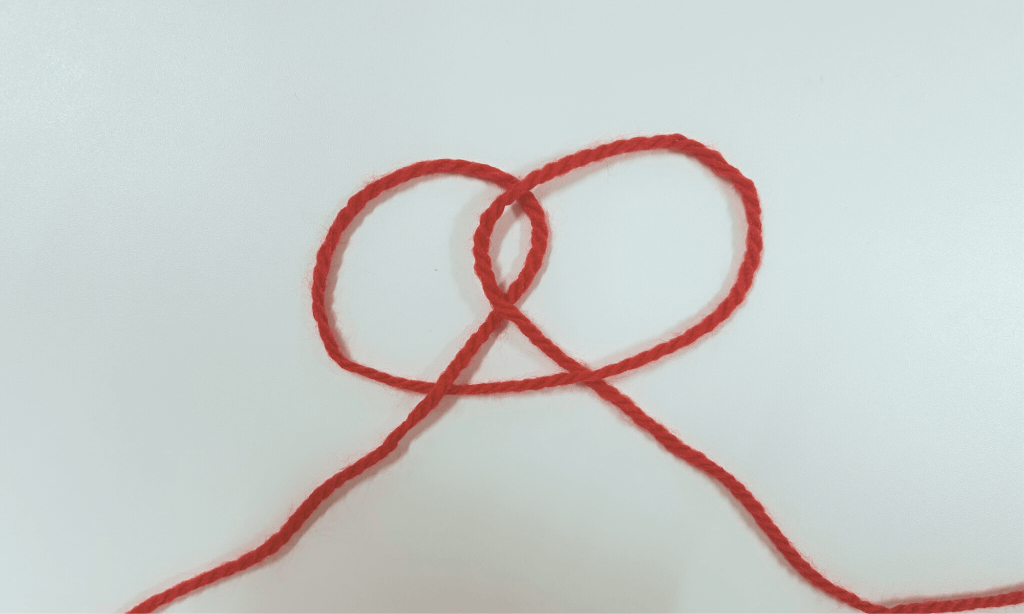 もう一つ輪を作ります。このとき、輪っかの右半分のロープが上に交差するようにします。