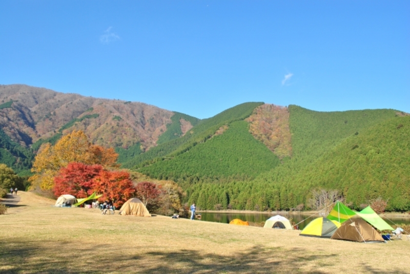 亀山湖畔に位置するオートキャンプ場。紅葉の見頃は本州で最も遅いと言われており、紅葉シーズンに乗り遅れてしまった方にもおすすめです。フリーサイトは1張1,100円と格安。オートサイトでは電源の貸出もあるので、快適な秋キャンプが実現します。