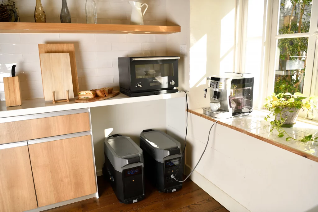 ただでさえ、ポータブル電源としては圧倒的な3,600Whもの容量を誇る本製品ですが、専用のエクストラバッテリーを最大2台接続することで10,800Whもの驚異的な大容量を実現しました。