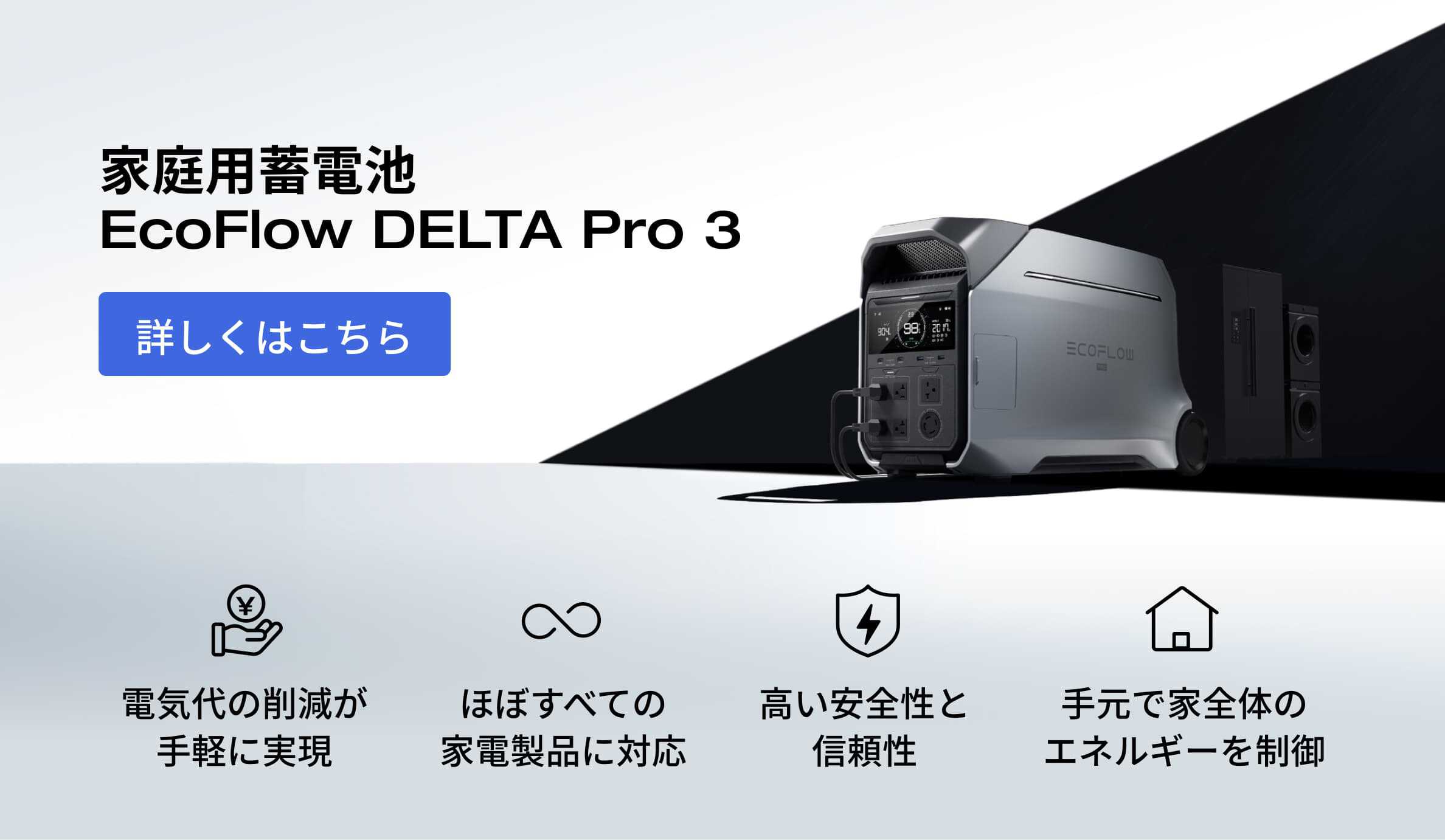 EcoFlowでは、パワフルで使いやすいポータブル蓄電池「EcoFlow DELTA Pro 3」を販売しております。ポータブル蓄電池の導入を考えている方は、ぜひEcoFlow製品の利用をご検討ください。