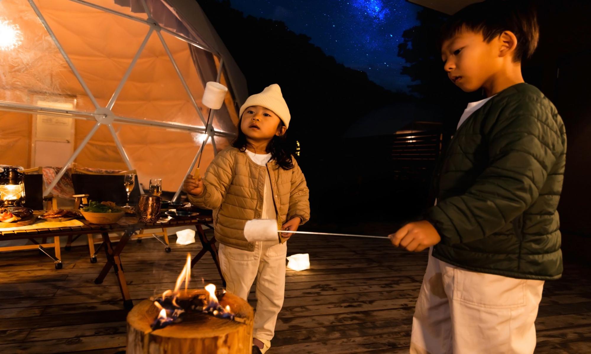 家族でのキャンプやバーベキューでは、焼きマシュマロが盛り上がる定番アクティビティです。