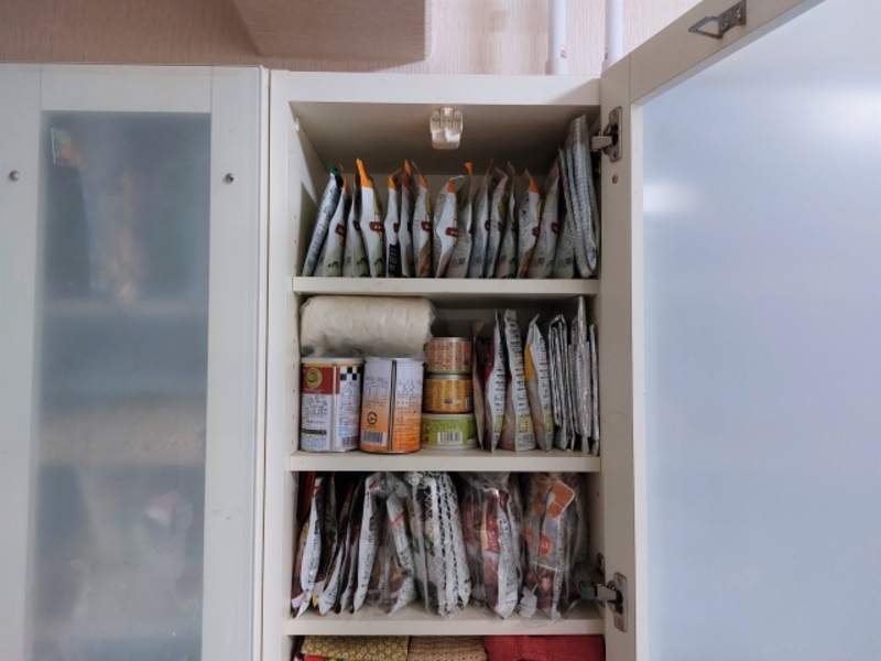 ローリングストックを長く続けるためには、買い置き用のスペースをいかに抑えるかが重要です。収納スペースを圧迫して日用品が置けなくなると、備蓄量を減らさざるを得ません。