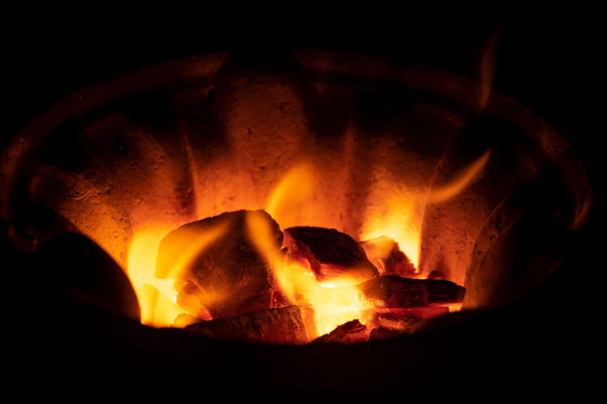 炭の配置や空気量を工夫することで火力を自在に調整できる