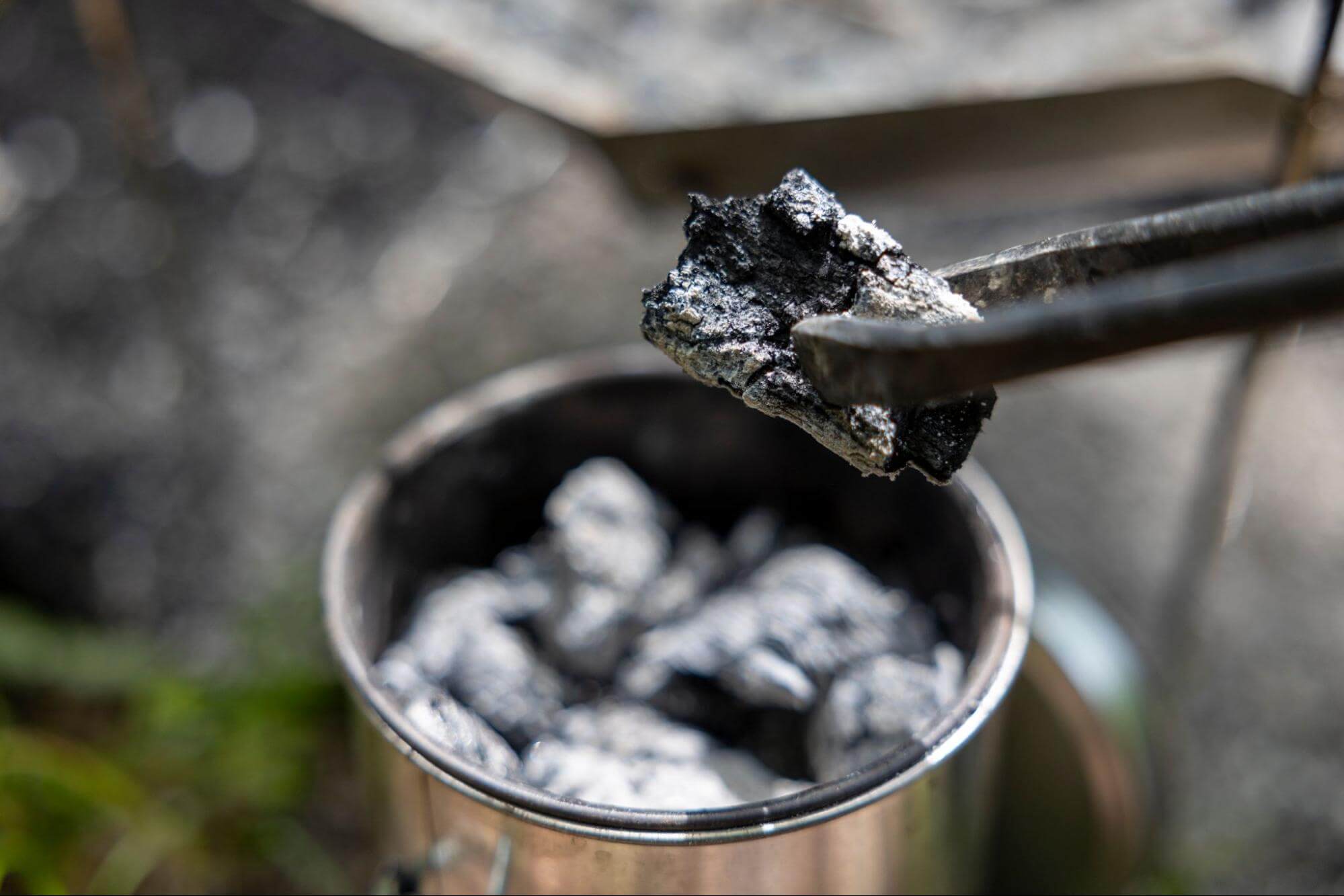 火消し壺や火消し袋に炭を移してしっかり消火する