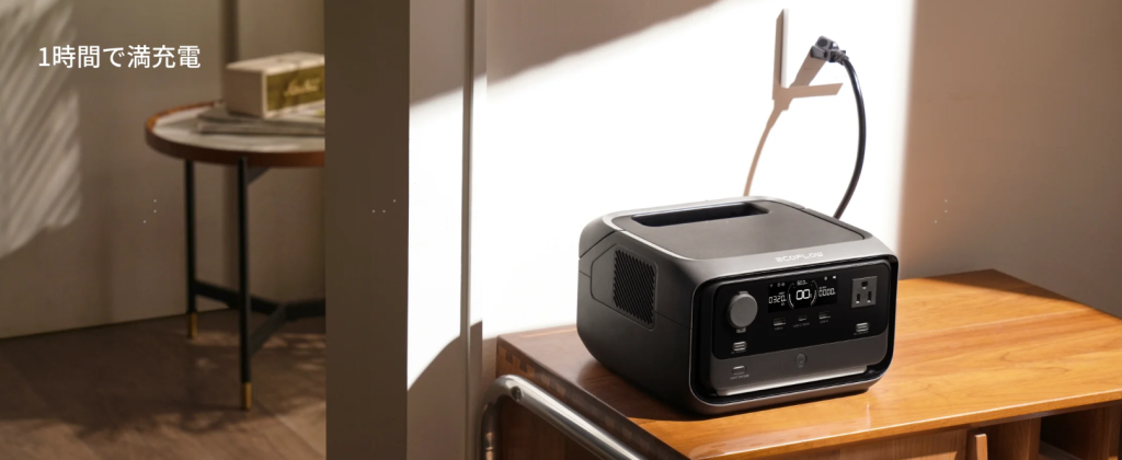 本サイトを運営するEcoFlowが販売する小型ポータブル電源「EcoFlow RIVERシリーズ」は、AC充電で最短1時間という脅威の充電スピードを誇ります。使いたい時にすぐ使えるので、利用シーンも広がります。
