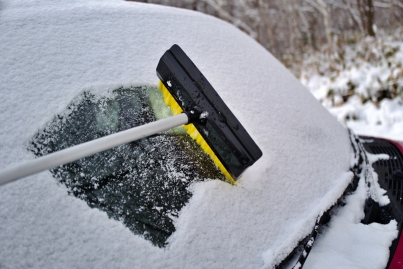スノーブラシ | 車に積もった雪 | ブラシ部分で車に積もった雪を払う |
