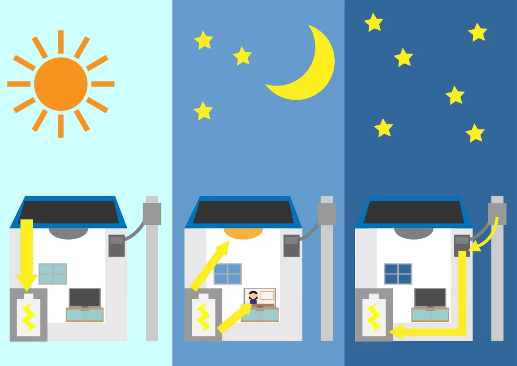 ソーラーパネル単体では太陽光が射していない夜には発電できませんが、蓄電池があれば日中に充電した電気を夜間や停電時に使用できます。