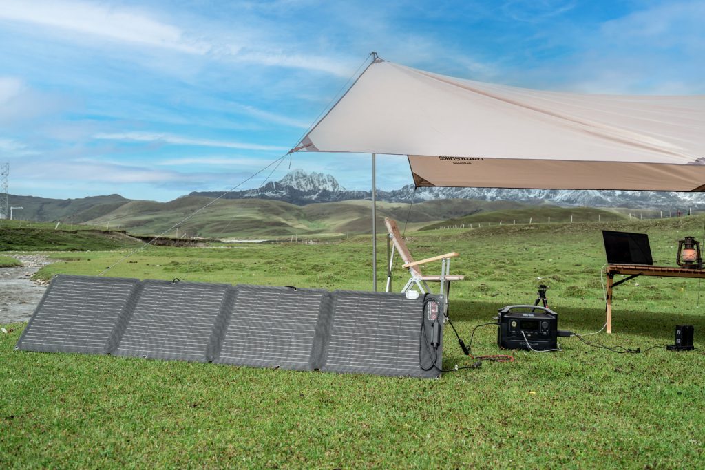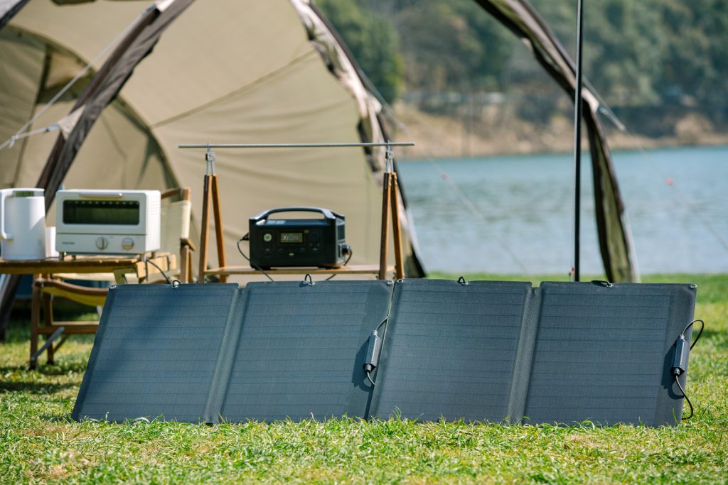「EcoFlow400Wソーラーパネル」は3枚直列でつなげることで1200Wの電力を作り出すことができるため、一泊二日程度のキャンプにはぴったりです。夏や冬のキャンプに出かける際には暑さ・寒さ対策で電力が多く必要になるケースもあるため、こちらのソーラーパネルが役立ちます。電力の変換効率も業界トップクラスの最大22.4%です。また、防塵・防水仕様になっているので、キャンプ中も安心して使用できます。設置の際には角度を40~90度に調整可能となっているため、初心者にも扱いやすいです。