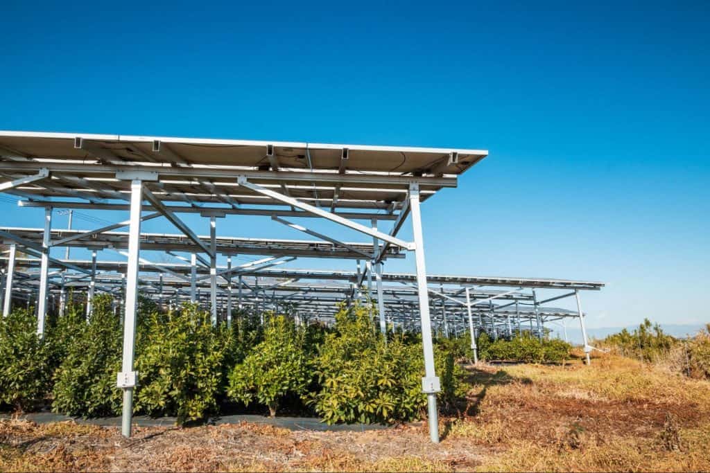農地の上部にソーラーパネルを設置し、作物の生育に必要な日光を確保しながら、余剰の光エネルギーを電力に変換します。