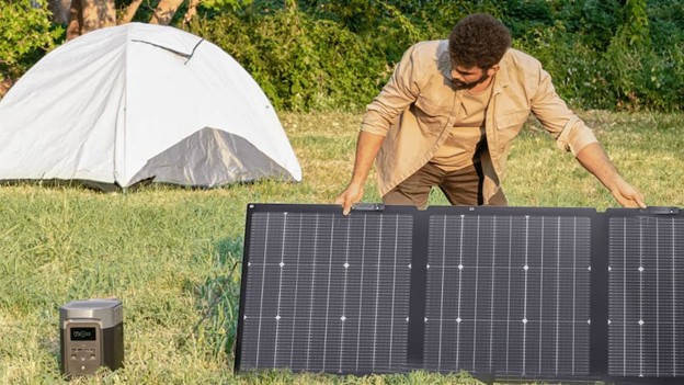 The panel folds neatly, weighs only 7 kg, and carries an IP68 rating for water and dust resistance. It’s easy to pack, quick to set up, and a strong match for UK weather, reliable even on bright-cloudy days.