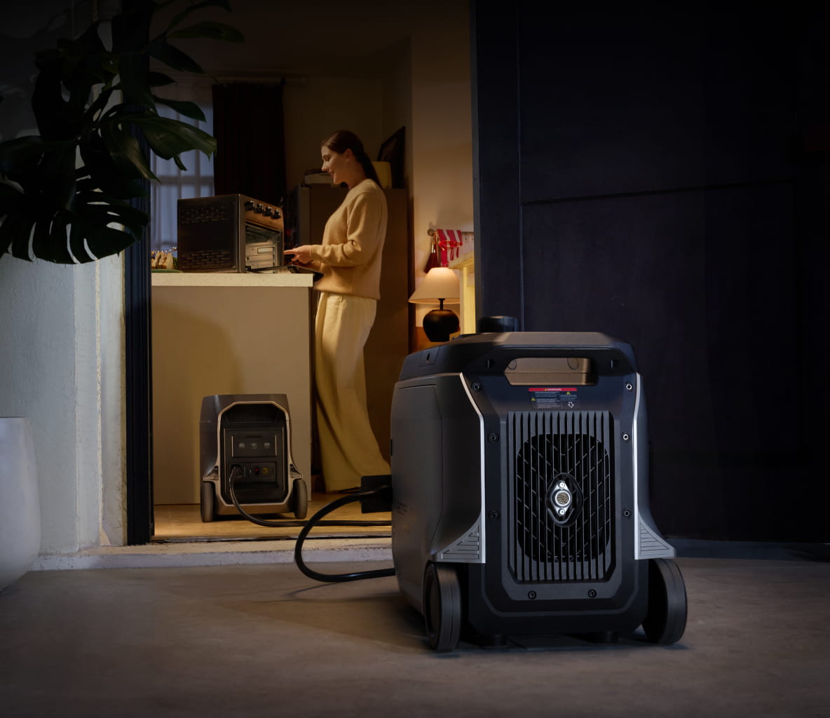Pair DELTA 3 Ultra Plus (3072Wh) with an EcoFlow Smart Generator [8] to achieve longer runtime—automatically switching between fuel and battery to keep you powered through multi-day outages or off-grid adventures.
