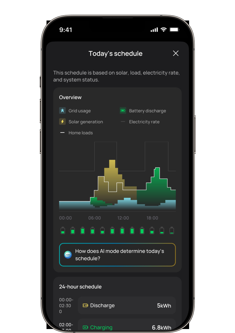With the EcoFlow App, EcoFlow OCEAN Pro uses AI to manage your home’s energy with precision. It learns your daily patterns, predicts solar input, and runs your system in the most efficient way.