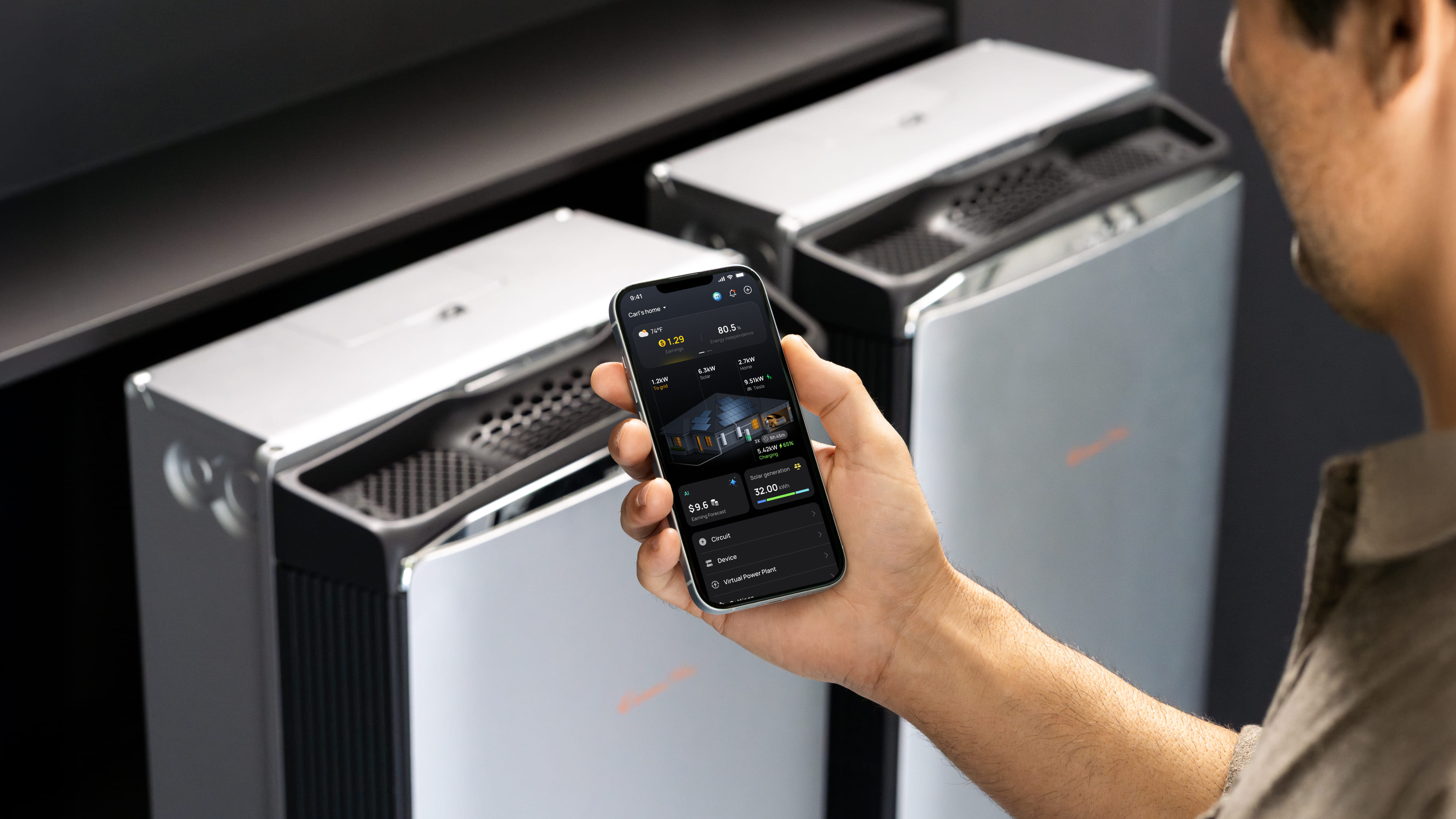 View battery status, solar input, and grid usage.